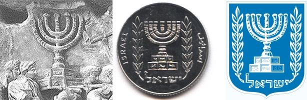 The obverse of the 5 New Agorot trade coin shows the Menorah in its official form as Israel's State emblem. The best known origin of the modern design can be seen on the Arch of Titus in Rome, where The Sack of Jerusalem by Titus in 70 AD is illustrated in the finest detail. The modern State emblem exemplifies the resurrection of the People of Israel, almost 1900 years after the destruction of the Second Temple. |
