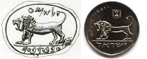 The origin and whereabouts of the Roaring Lion on the obverse of the ½ Sheqel trade coin remains one of the greatest mysteries of Holy Land archaeology since 1903, when it was discovered at Megiddo by Gottlieb Schumacher, a German railway engineer (the Dera'a to Haifa branch line of the Hedjaz railway was built under his management) cum archaeologist, born in a Templar community in Haifa. The depiction in great detail of the King of Beasts appears on a seal, inscribed with the words "Shema Servant of Jerobeam". As two kings with the same name, Jerobeam I and Jerobeam II, ruled the kingdom of Israel, it is believed that Shema was a high official of king Jerobeam II (8th Century BC). Shortly after its discovery, Schumacher presented the seal as a gift to the Ottoman sultan Abd-el Hamid II. Since then the "Seal of Shema" has mysteriously vanished, never to be seen again. A plaster copy was made prior to its handover to the sultan, preserving this beautiful piece of Biblical history for posterity. |