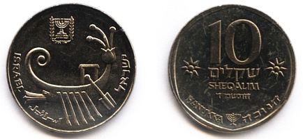 10 Sheqalim Alloy: cupro-aluminium (copper 75%,