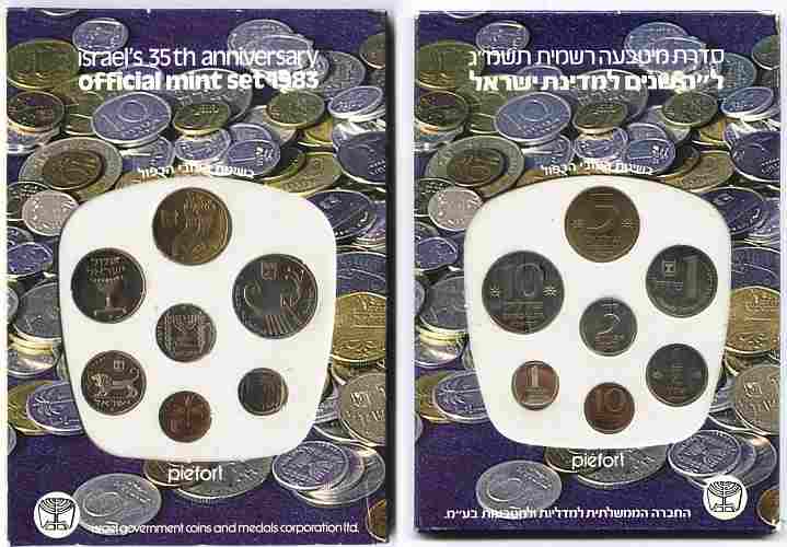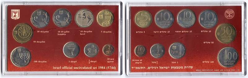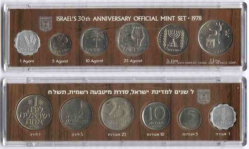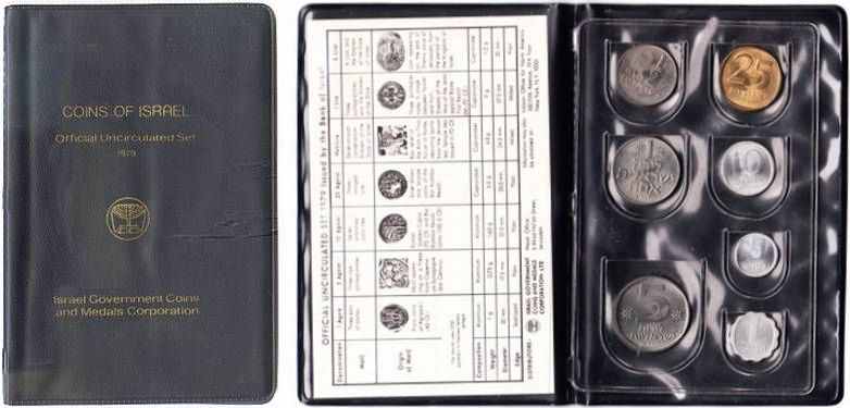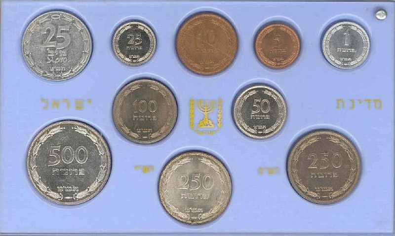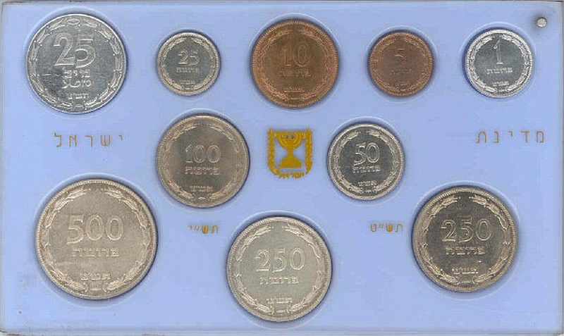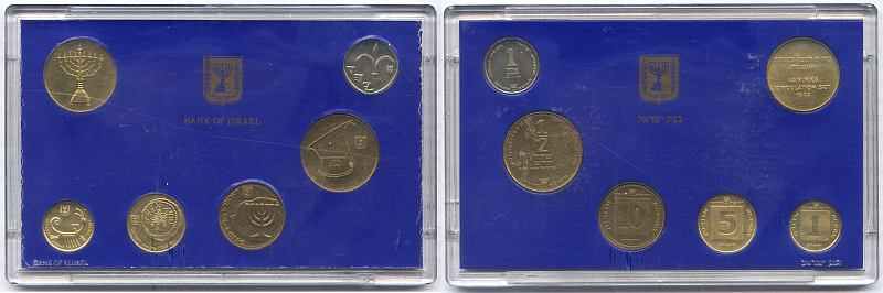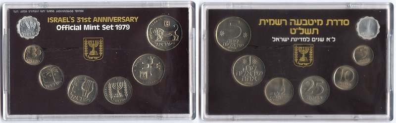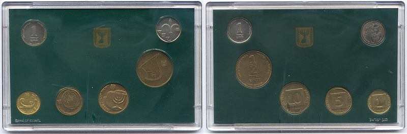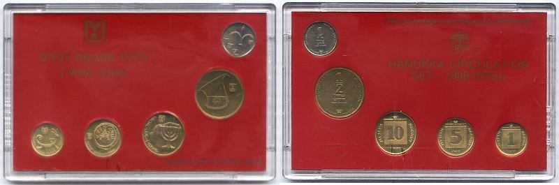 Catalog #: MSD5 Coins in set: 18 Description: Complete type set of 18 Pruta & Agorot coins, uncirculated & circulated Inside print: Old logo of the predecessor of