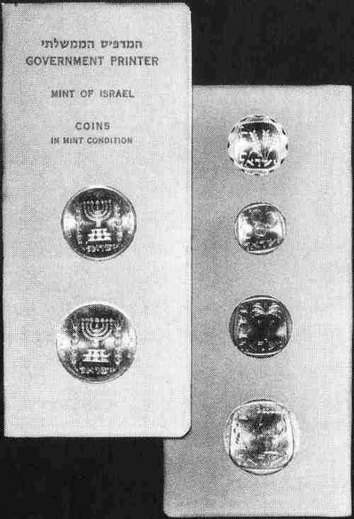 Catalog #: MS14 Coins in set: 6 Description: The Government Printer Mint of Israel Coins in Mint condition Packing: White plastic wallet with holed cards inside Quantity issued: 100 sets (estimated) Value: USD 1,500.00 |