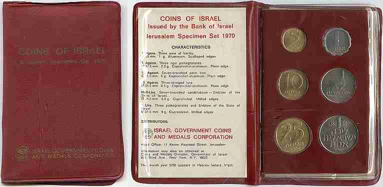 Catalog #: MS23 Coins in set: 6 Description: Jerusalem Specimen Set 1970/5730 Value: USD 4.00 |