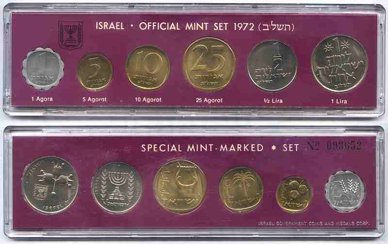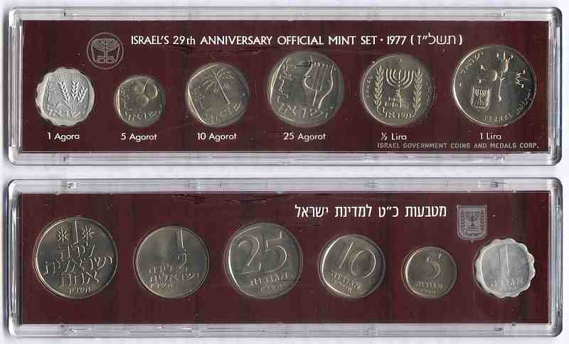 Israel Coin Issues, Uncirculated, with regular 1 Agora coin; 25 Agorot coin
