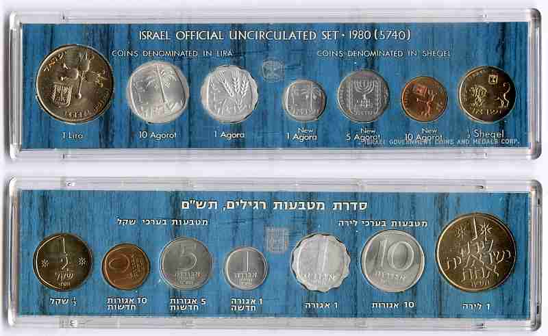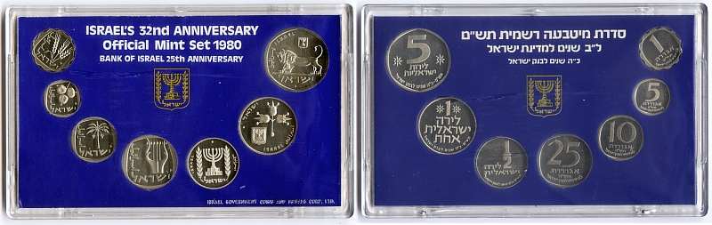 Catalog #: MSA107a Coins in set: 2 - 5 Lirot dated 5739/1979, 5 New Agorot 5740/1980 Description: Jerusalem Coin Set, Set of 2