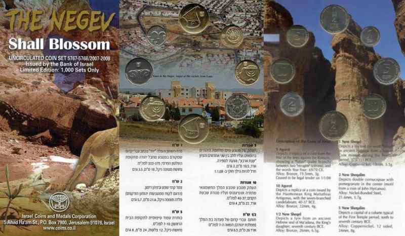 2008 Israel Mint Set - Assembled Especially for the World Money Fair (Contains Hanukka Coins dated 5768/2007) |