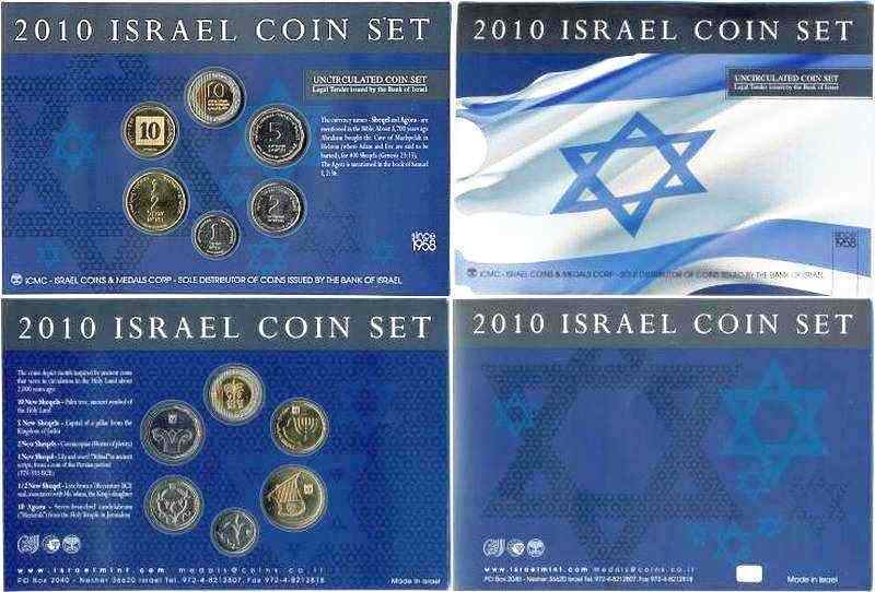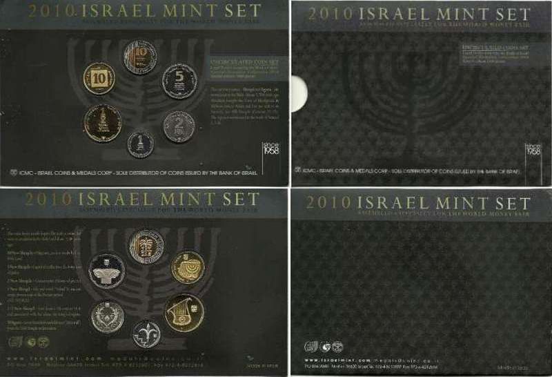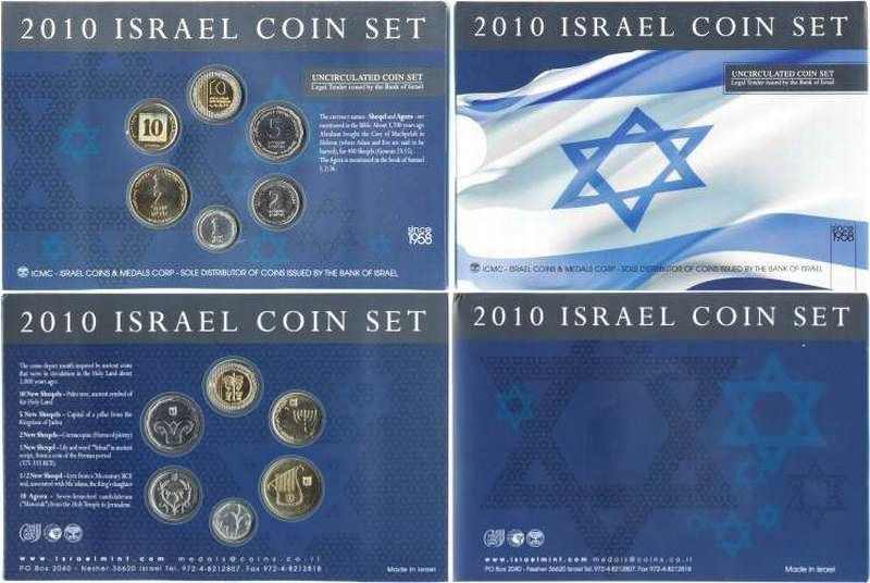 Israel Uncirculated Coin Set Type II 10 Agorot, 1/2 NIS & 10 NIS coins dated 5770/2010 - other coins with earlier dates |