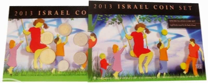 Catalog #: MS110a Coins in set: 6 - 10 Agorot dated 5770/2010, 1/2 NIS 5770/2010, 1 NIS 5769/2009, 2 NIS 5769/2009, 5 NIS 5769/2009, 10 NIS 5710/2010 Description: 2013 "Children of Israel" Uncirculated Coin Set Theme: Children of Israel Packing: Multicolored card in multicolored sleeve Quantity issued: ? (to be announced) sets Value: USD 35.00 |