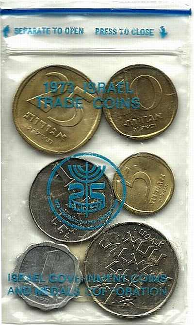 Catalog #: MS16 Coins in set: 6 Description: Uncirculated 1963 (5723) Issues, with regular Agora coin Quantity issued: 10,455 sets total - sets MS16 & MS17 combined Value: USD 15.00 |