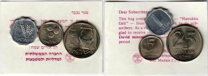 Catalog #: HS1 Coins in set: 6 Description: Six Different Pruta Denominations (5722/1962), contains low denominations 1 through 25 Pruta Quantity issued: 5,000 sets Value: USD 18.00 |