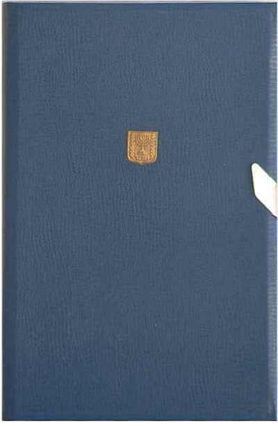 Set of 18 Pruta and Agorot Coins - Velvet Type III - Dark blue velvet left section inside, light blue velvet right section inside, small metal State emblem on cover |