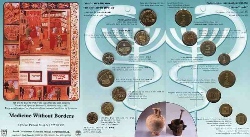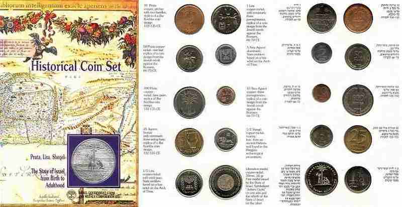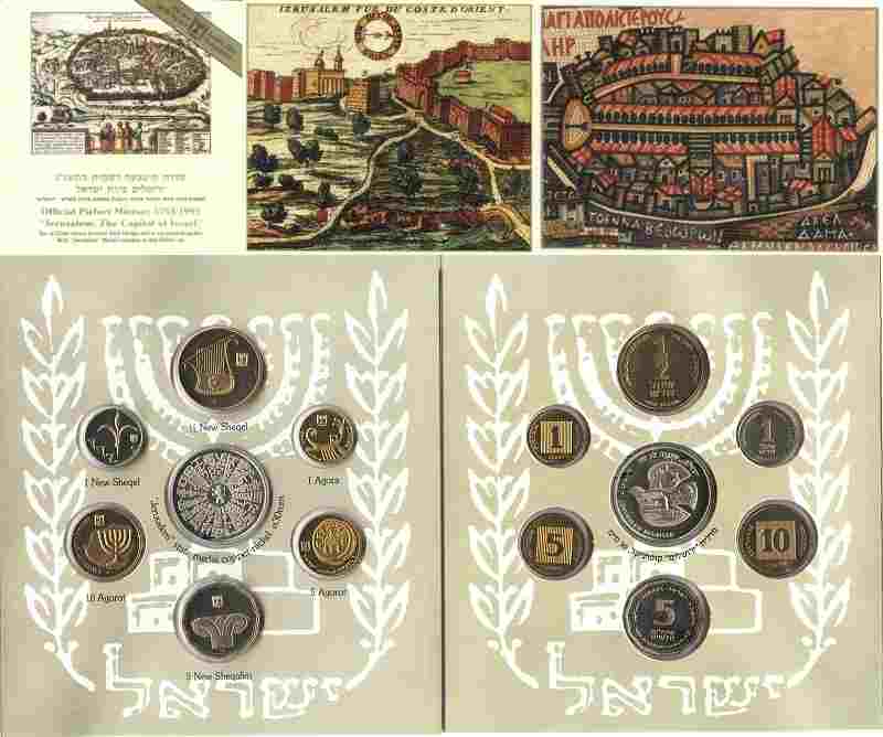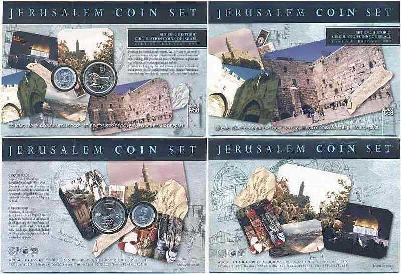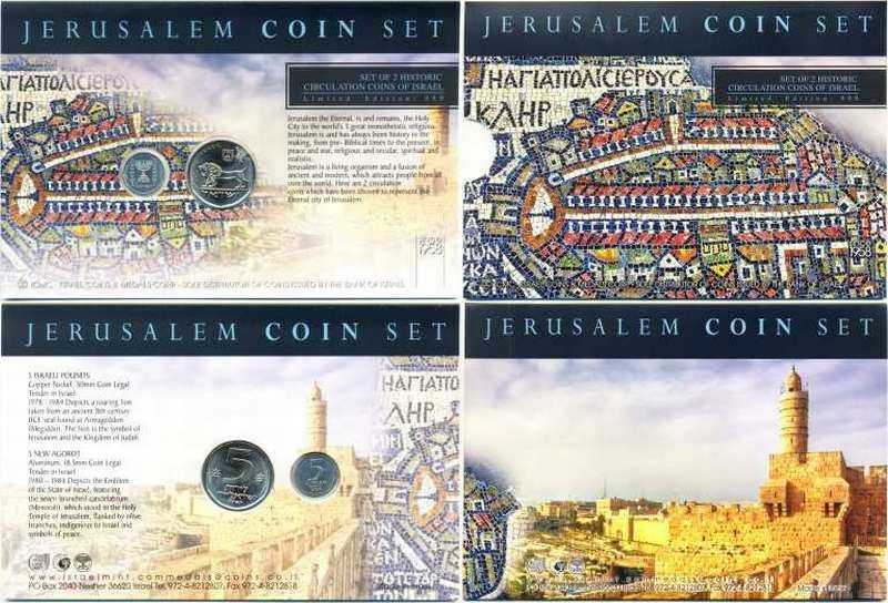 Historic Circulation Coins of Israel - Madaba Map & Tower of David; Uncirculated Quantity issued: 500 sets Value: USD 15.00 |