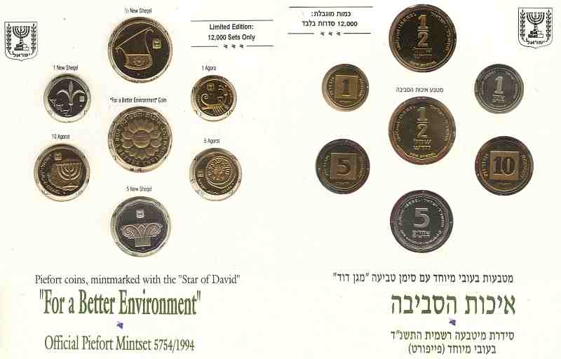 Catalog #: PPS20 Coins in set: 8 - Obverse mint marked with Star of David Quantity issued: 10,000 sets total - Type I & II combined Value: USD 35.00 |