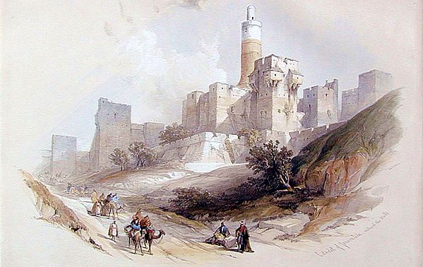 The obverse of the 500 Mils British Mandate currency note shows Rachel's Tomb. According to the Bible (Genesis 35:19-20), "...Rachel died, and was buried in the way to Ephrath, which is Bethlehem. And Jacob set a pillar upon her grave: that is the pillar of Rachel's grave unto this day." The present-day structure that is believed to obtain Rachel's remains dates from 1623 when the Ottoman Governor of Jerusalem enclosed the then existing pyramid of stones within a dome-covered stone building. Only one year after the British artist W.H. Bartlett made the steel engraving shown here, Sir Moses Montefiore oversaw the enlargement of the building to its present form. The Tower of David is featured on the reverse of the 500 Mills note and all other British Mandate currency notes. This impressive towering building, beautifully captured by David Roberts, is part of the citadel of the Old City of Jerusalem. Since the 2nd century BC, several fortified structures have stood intermittently on the same spot. The citadel was rebuilt between 1537 and 1541 by the Ottomans, who designed an impressive entrance, behind which stood a cannon emplacement. For 400 years, the citadel served as a garrison for Turkish troops. The Ottomans also installed a mosque at the site and added the minaret in 1635, which still stands today and gives the citadel its impressive look. The complex was named Tower of David (Migdal David in Hebrew, and Burj Da'oud in Arabic) during that period too, because of its proximity to Mount Zion, the place where King David is believed to be buried. |