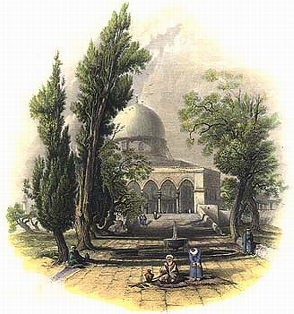 Images on Palestine Currency Board 5 Pounds Note: Lithograph by Rev. Samuel Manning, 1873 |