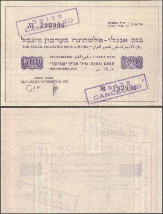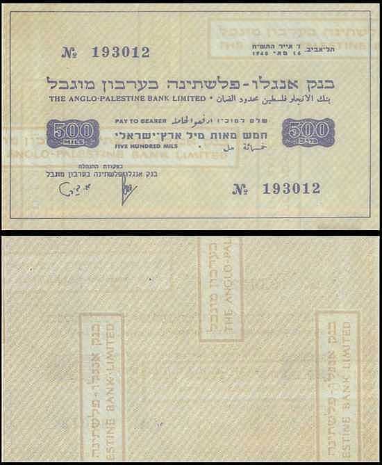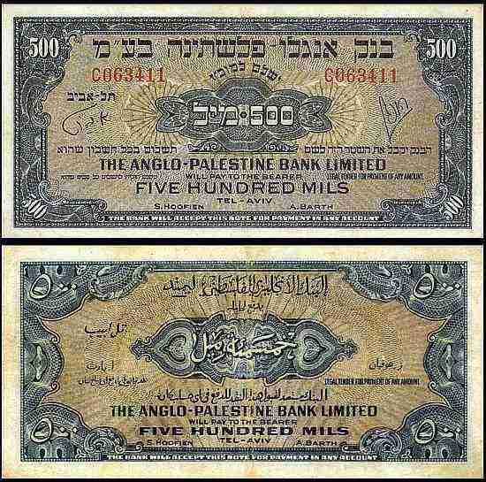 When the British Mandate over Palestine ended on 15th May 1948, and the British authorities subsequently left the country, they took with them most of the banknotes that were in circulation since 1927. |
