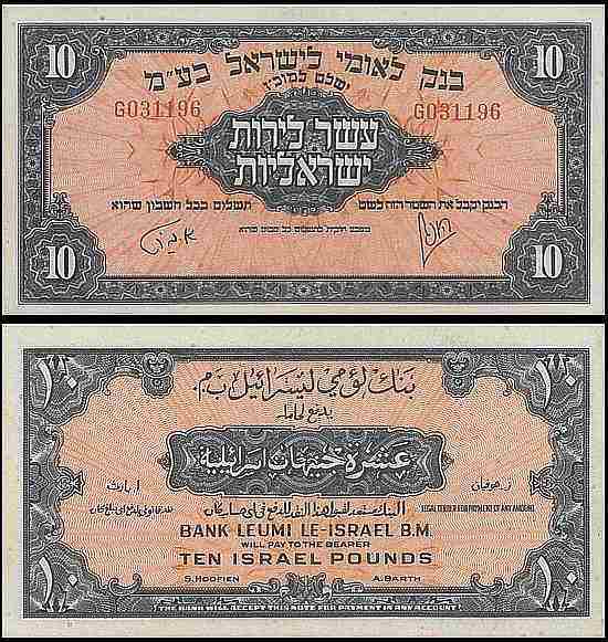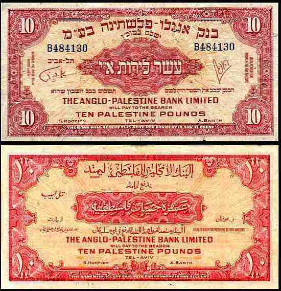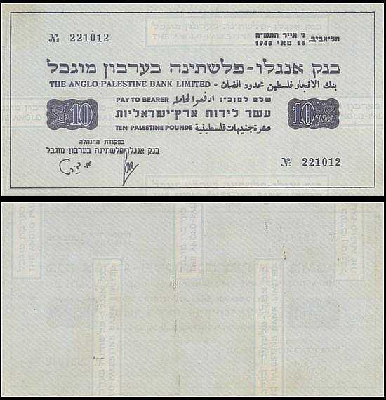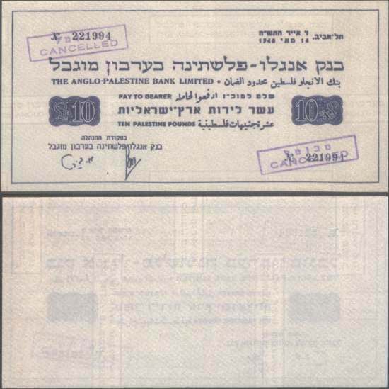 10 Palestine Pounds Date of issue: 18 August 1948 |