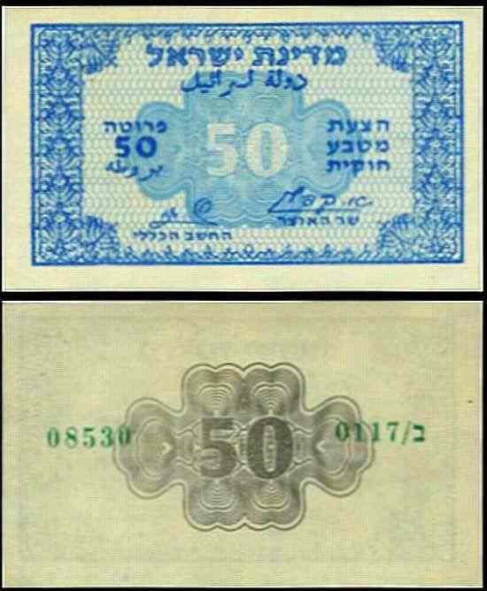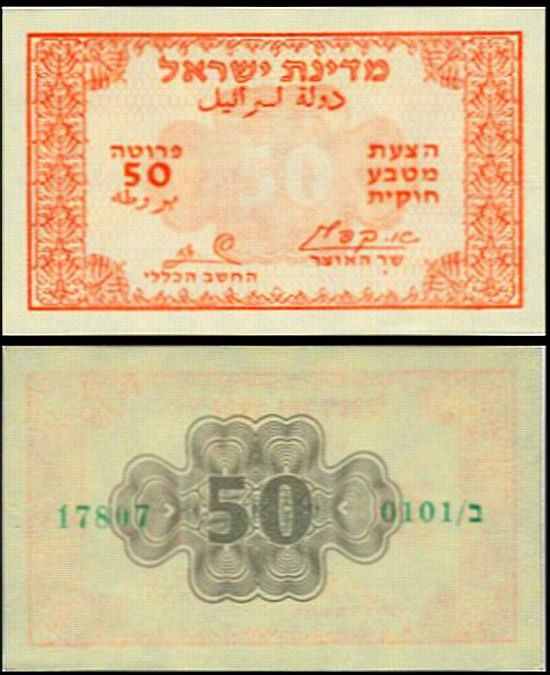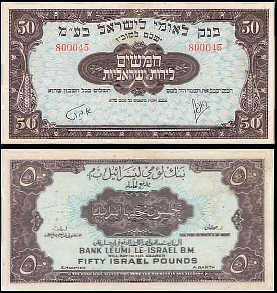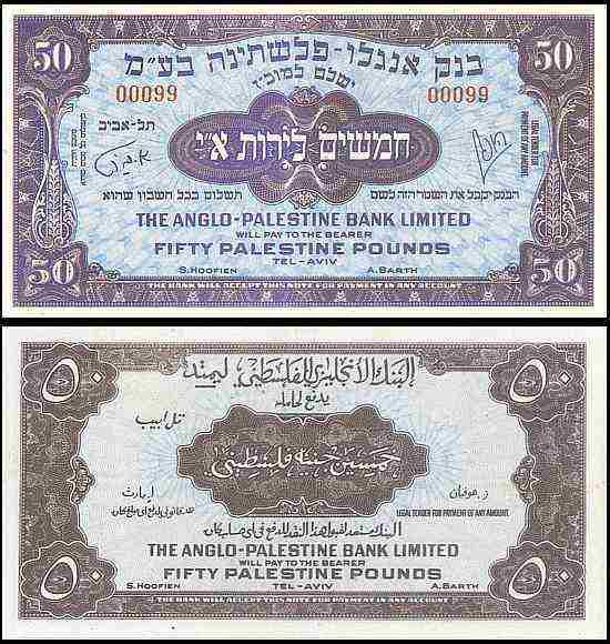 50 Palestine Pounds Date of issue: 18 August 1948 |