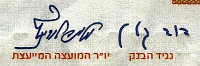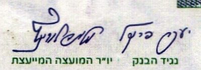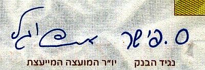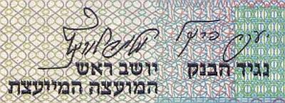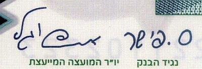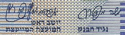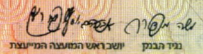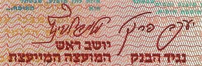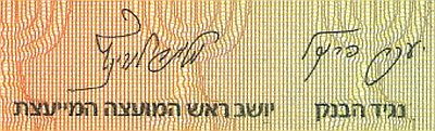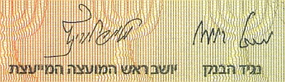 of the New Shekel) banknote: Left: Autographed picture of Shaul Tchernichovsky, 1930s (obvere) Right: capital of Corinthian column, Beit Shean (reverse) |