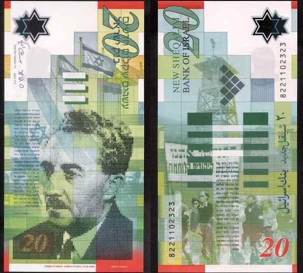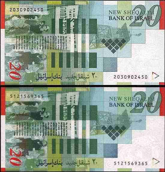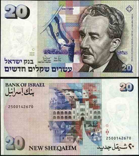 In December 2009 the Bank of Israel officially announced that a new series banknotes, series III of the New Shekel* (series VIII since the establishment of the Bank of Israel), replacing series II of the New Sheqel (series VII since the establishment of the Bank of Israel).This series is dedicated to personalities who contributed much to Hebrew culture in general and literature in particular. Major design changes versus the previous series are the use of holograms, different sizes increasing with each denomination and the return to a horizontal design. The change : e new series will have banknotes in identical denominations of NIS 20, NIS 50, NIS 100 and NIS 200. An additional important design change is the dropping of the English translitaration "New Sheqalim" in favor of "New Shekels". |