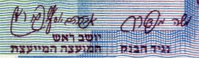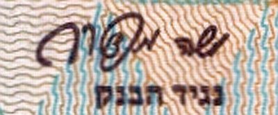 Signatures: Cat. # 52a Right: Moshe Mandelbaum, Governor of