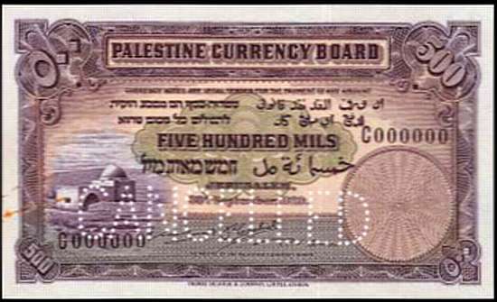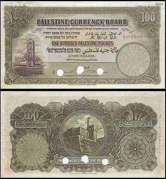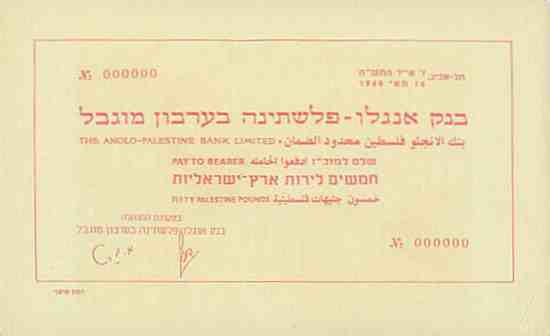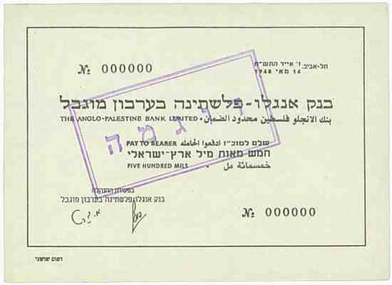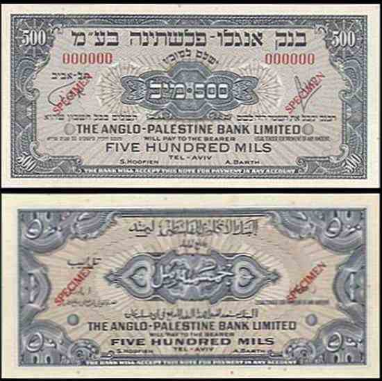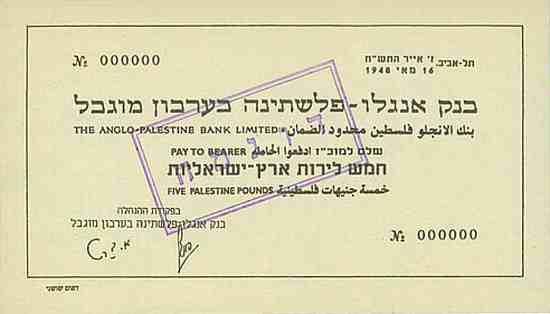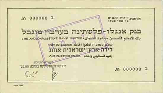 DUGMA (Heb. for SPECIMEN) ovpt. on obverse, SPECIMEN ovpt. on reverse |