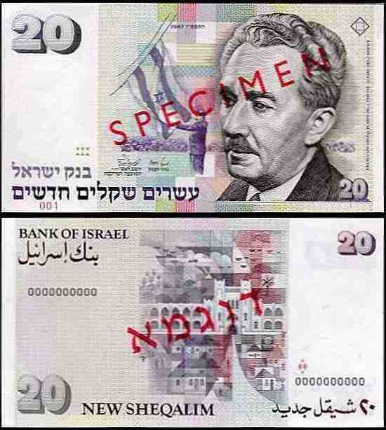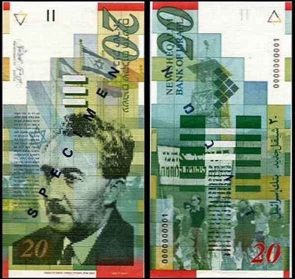 20 New Sheqalim Type II - polymer Obverse: Moshe Sharett Date: 5768/2008 Material: polypropylene polymer |