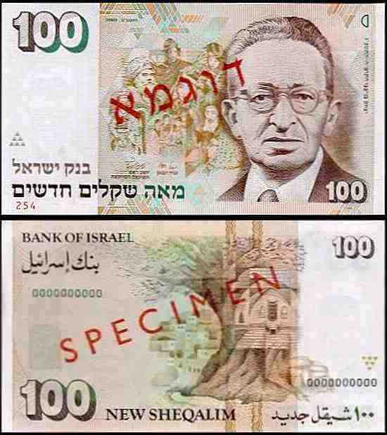 100 New SheqalimObverse: Yitzhak Ben-Zvi Printers (unverified): Royal Joh. Enschedé, Haarlem/Netherlands |