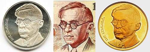 Science-based industries have always been at the forefront of Israel's development. From the early days of statehood, Israel was isolated geographically and economically by hostile neighbors, trying hard to strangulate Israel by all means, including the so-called Arab Boycott, which gave many international corporations and industries the stark choice between doing business either with the entire oil-rich Arab world, or with tiny Israel. This "either, or" method of blackmail forced Israel to adopt a policy of scientific self-reliance, first embarking on a massive program of establishing and developing a defense industry that could supply the nation's defense forces with vital hardware and equipment. Today, Israel is in the world's top league of of suppliers of defense equipment. Another, more mysterious example of science-based development is Israel's nuclear science. Much has been written about Israel's purported nuclear capabilities, and the nuclear facilities at Dimona in the Negev desert remain the subject of much mystery and guesswork. Israel's second - and less hyped - nuclear facility is the Soreq reactor opened in 1958, used for scientific and technological applied research and development. The Soreq nuclear reactor appears on the reverse of the 5 Lirot "Albert Einstein" banknote of the third Bank of Israel series dated 1968 (KM #35). To the left of the banknote rendition of the dome and base is an aerial overview of the complex, and on the right the opening ceremony attended by Foreign Minister Golda Meir and Shimon Peres, director-general of the Ministry of Defense.
