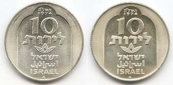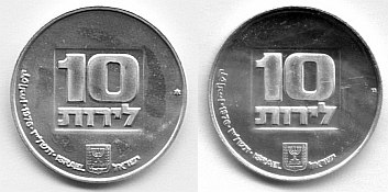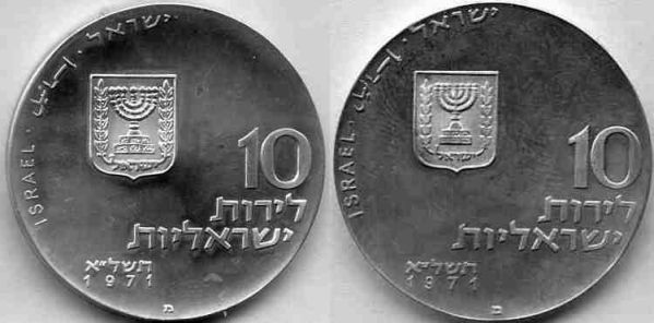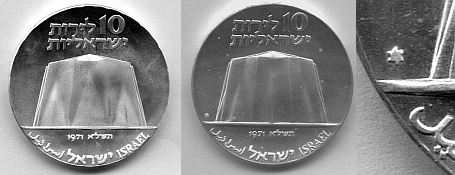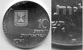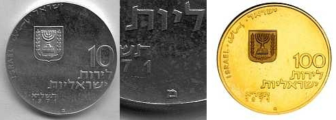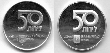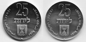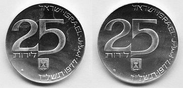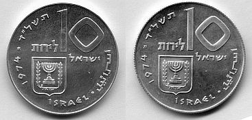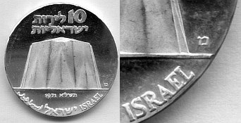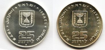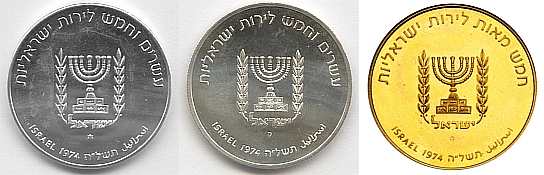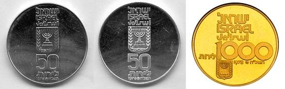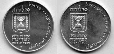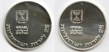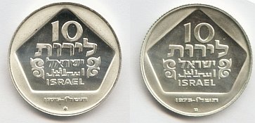 Bern die, on reverse: open 'Mem' mintmark, wider State emblem, ISRAEL away from edge. |