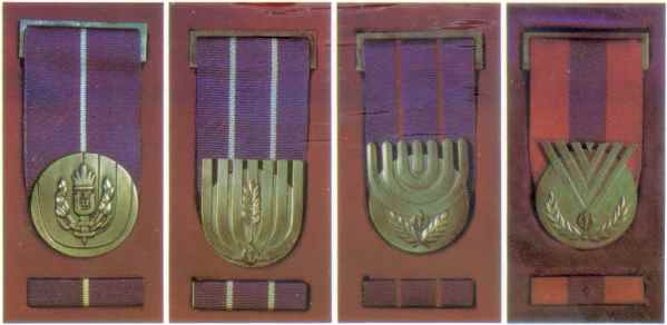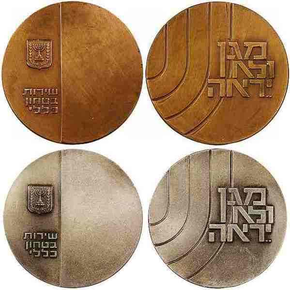 Four medals were issued for the Correctional Service in 1975 by the Israel Government Coins and Medals Corporation in 1975. Service Medal: Distinguished Service Medal: |