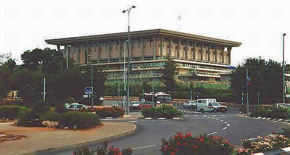 At the very height of the War of Independence, the people were called upon to elect 120 representatives and on 14TH February 1949 the first session of Israel's Legislature - the Knesset - was convened in temporary quarters. The cornerstone for a permanent home for the Knesset was set in 1958 on a high and rugged hill in the western part of Jerusalem, the nation's capital. The "Knesset Law 5718 (1948)" stipulated that among its major functions, the Knesset shall make laws, approve the Cabinet and scrutinize its work, and elect the President of the State. |