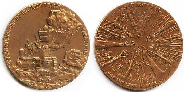 Absorption faces many problems in a land that keeps its gates open to Jewish immigrants, many from poor countries. The immigrants partly arrive without means or advance preparation to meet local conditions. Absorption begins at the air terminal, and its task is not complete until the new immigrant has housing and has found employment, whether based on past skills or newly acquired ones. Moreover, immigrants' children must be placed in schools and the immigrant himself must reach a point of economic independence. In the center of the reverse is a stem, the top of which bears a flower in the form of a Star of David. In place of stamens appears the seven-branched candelabruma. The Hebrew citation on the rim reads: "I will plant them upon their land and they shall not forsake it again" (Amos 15:15). The short English translation reads: "I will plant them upon their land." |