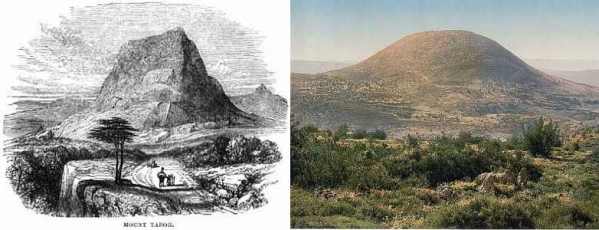 Mount Tabor on lithograph dated 1851, and present-day photo. |