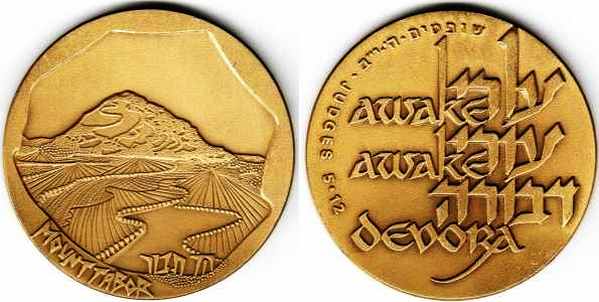number of churches and monasteries there, dating from Byzantine times. The medal's obverse depicts Mount Tabor overlooking cultivated