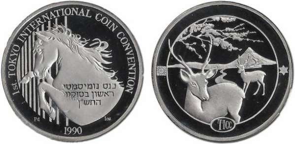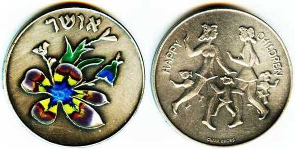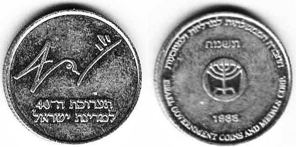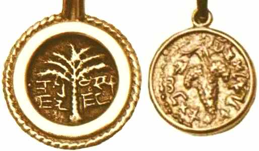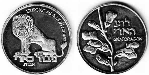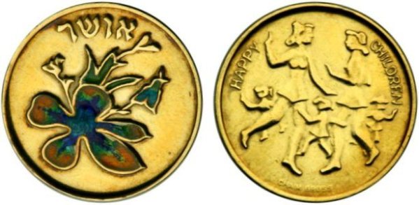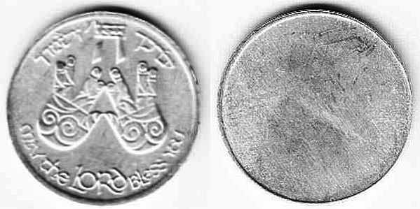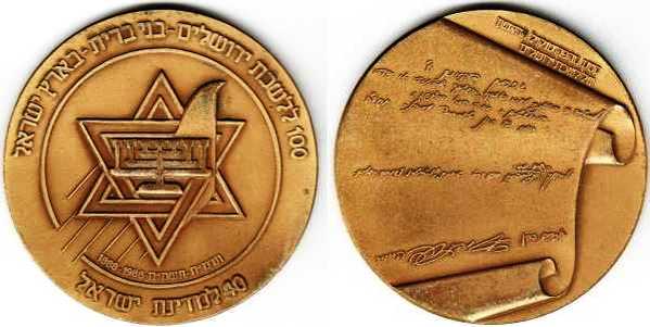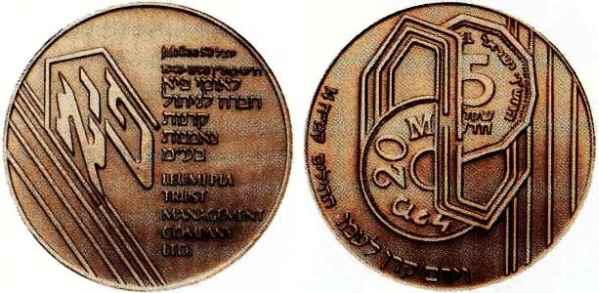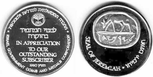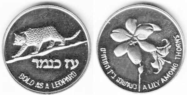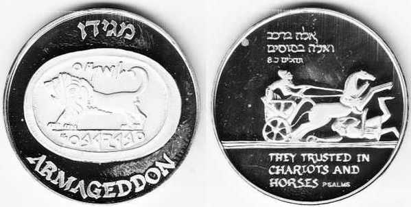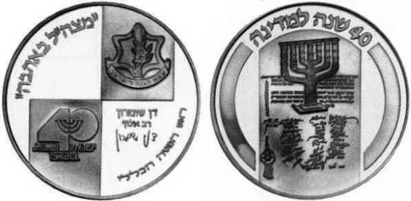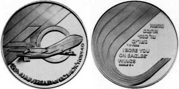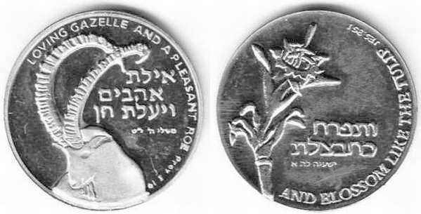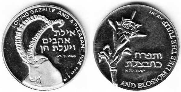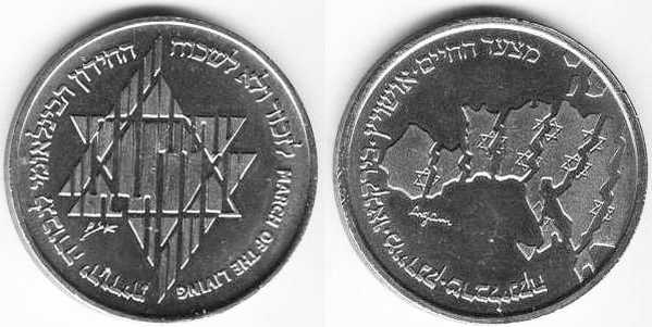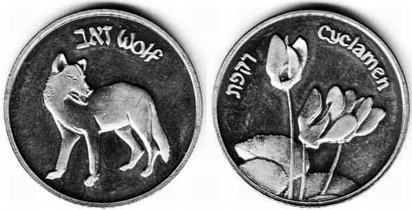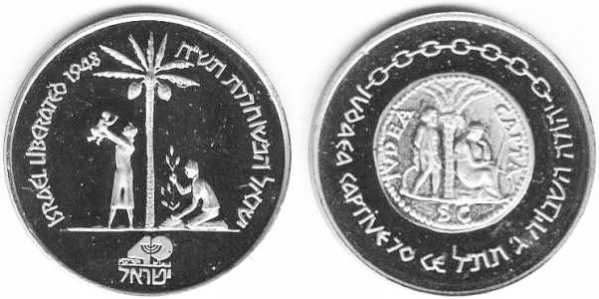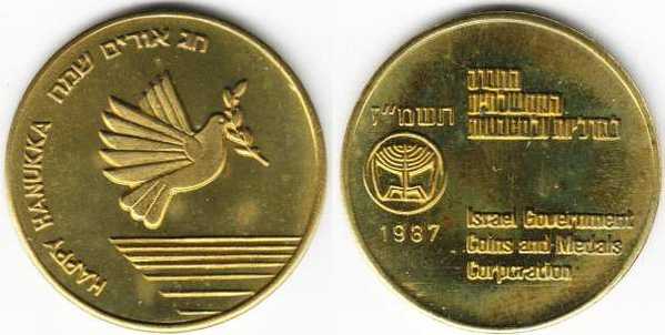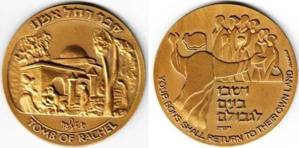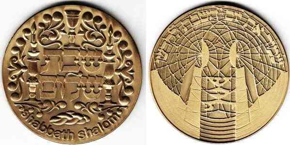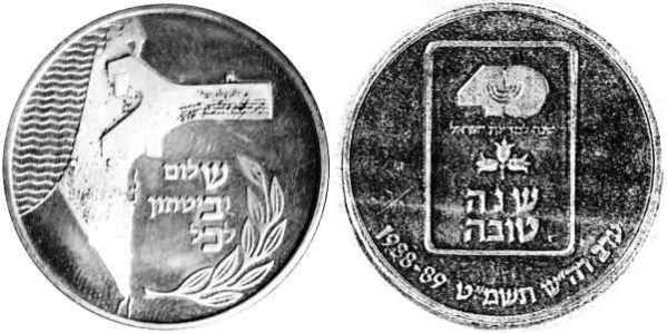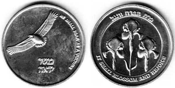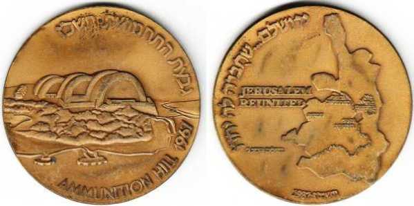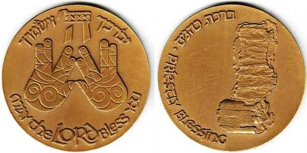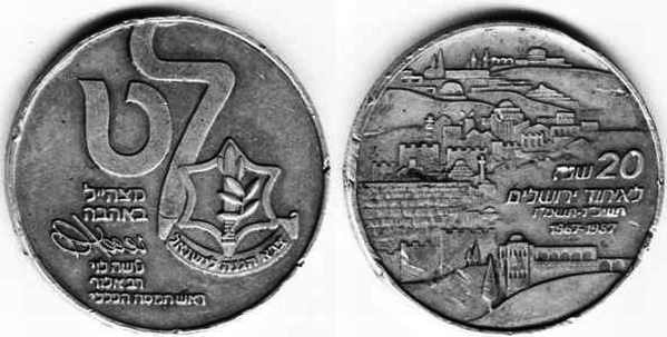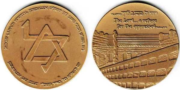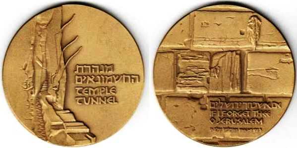 Peace. The obverse show sites in Jerusalem: the Western Wall, the Broad