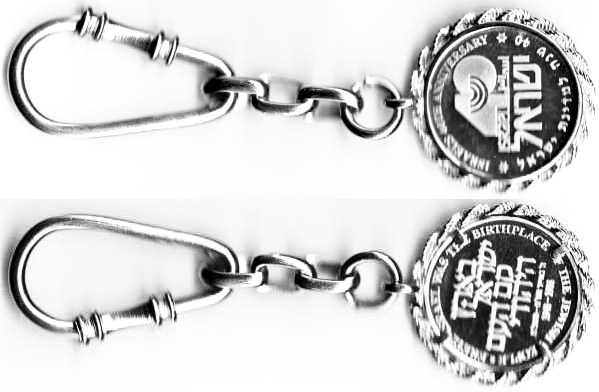 I wanted to say On the reverse appear the Hebrew word "Todah", and translations into Yiddish, Czech, French, German, English, Russian, Arabic, Spanish and Japanese, from top to bottom. |