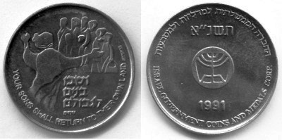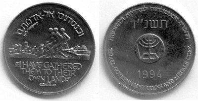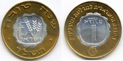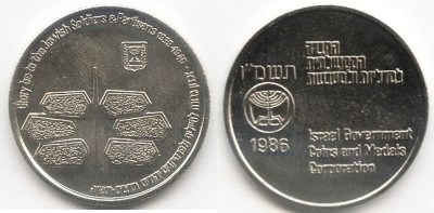 Sheqel coin (# 109), and on the 20 New Sheqalim gold bullion coin (# 467).
