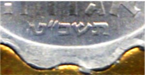 Inverted 1 Agora coin dared 5723/1963, in brass casing dated 5724/1964 |