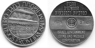 The 5761/2001 Season's Greetings token depicts on its obverse a stylized view of the ramparts of the Old City of Jerusalem. |