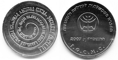 The 5767/2007 Season's Greetings token depicts a Wheel of Blessings, wishing the owner "A long life of peace, good omens, success, livelihood, spirituality, love, health, wisdom, honor, faith, joy". |