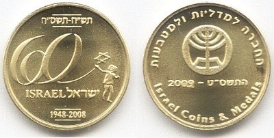 The 5769/2009 Season's Greetings token celebrates Israel's 60th Anniversary of Independence. Its obverse depicts the official 60th Anniversary emblem. |