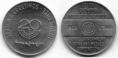 1 Agora coin dated 5729/1969, in brass casing dated 5724/1964 |