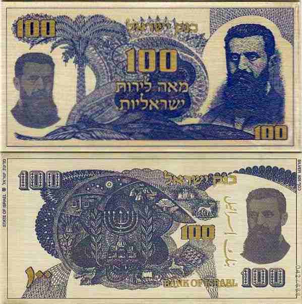 Series II of the Lira 1 Lira = 100 Agorot Alloy: silver .925 Dimensions: 110 x 55 mm Average weight of each replica: 58.0 gr Quantity issued: 999 sets Reverse markings: State emblem, STATE OF ISRAEL, SILVER 925, ser. # xxx/999 |