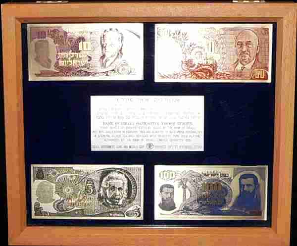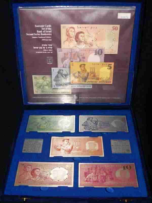 Bank Leumi Le-Israel B.M. Alloy: silver .925 Dimensions: 110 x 55 mm Average weight of each replica: 58.0 gr Quantity issued: 1250 sets Reverse markings: State emblem, STATE OF ISRAEL, SILVER 925, ser. # xxx/1250 |